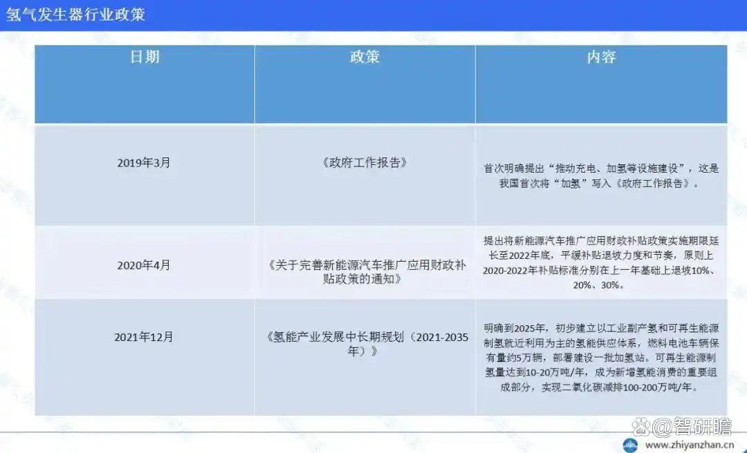 氫氣發(fā)生器行業(yè)政策